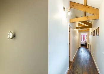 The cottage sleeps seven guests across four bedrooms. The first floor has one king-size bedroom. The second floor contains two king-size bedrooms and one single bedroom. There's one bathroom with walk-in shower. The kitchen/diner includes oven, hob, microwave and fridge.